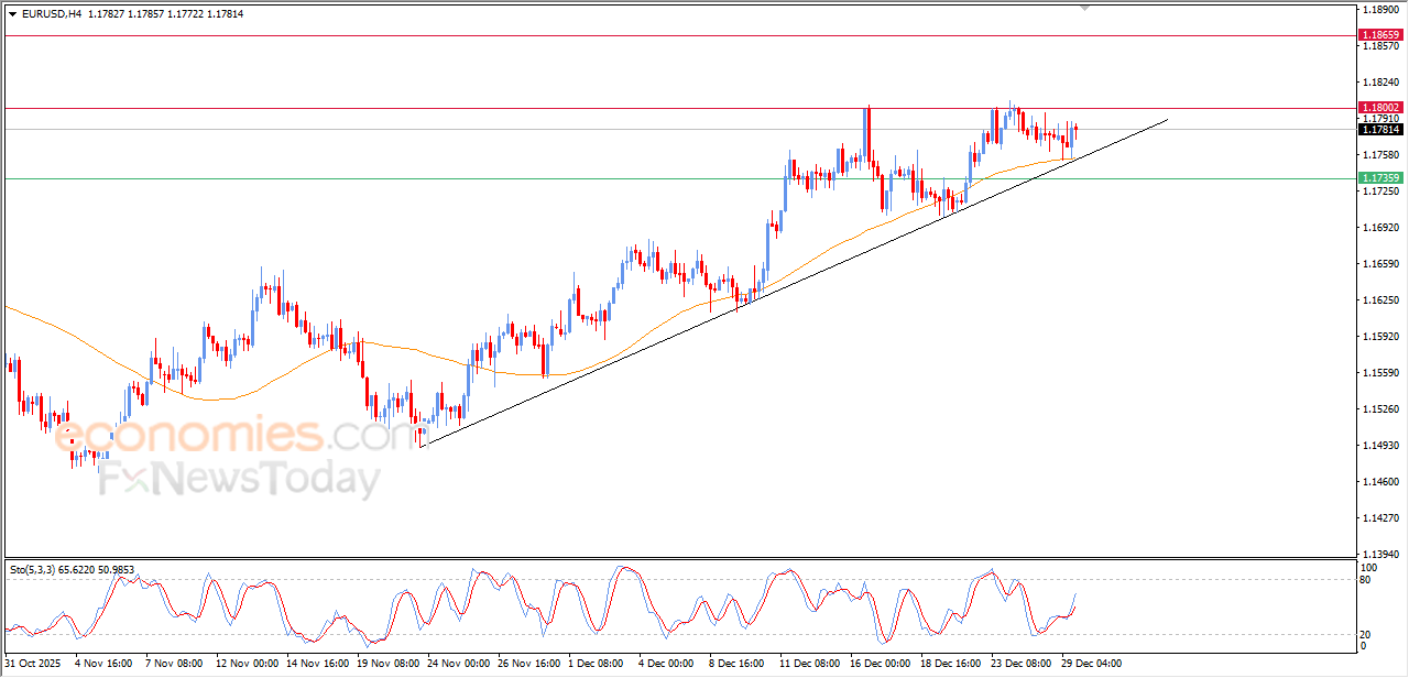 Para (EURUSD) rosła w zmiennych notowaniach na ostatnich poziomach intraday, wspierana pojawieniem się pozytywnych sygnałów na wskaźnikach siły względnej, przy kontynuacji dynamicznego wsparcia reprezentowanego przez notowania powyżej EMA50, przy dominacji głównego trendu wzrostowego w krótkim terminie.