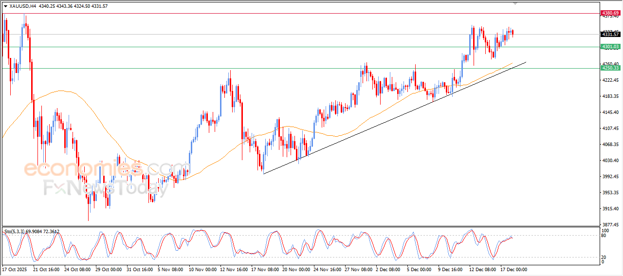 W ostatnich transakcjach wewnątrzsesyjnych na cenę złota nadal dominują pozytywne wahania, a główny trend wzrostowy nadal dominuje w perspektywie krótkoterminowej, a notowania złota przebiegają wzdłuż wspierającej mniejszej linii trendu, co wskazuje na stabilność trendu wzrostowego.